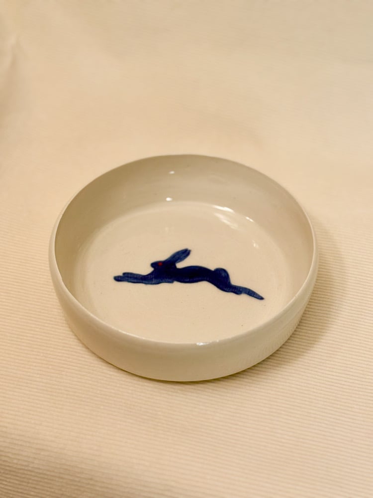 Blue Hare Ceramic Bowl | Hand-Painted Stoneware Dish